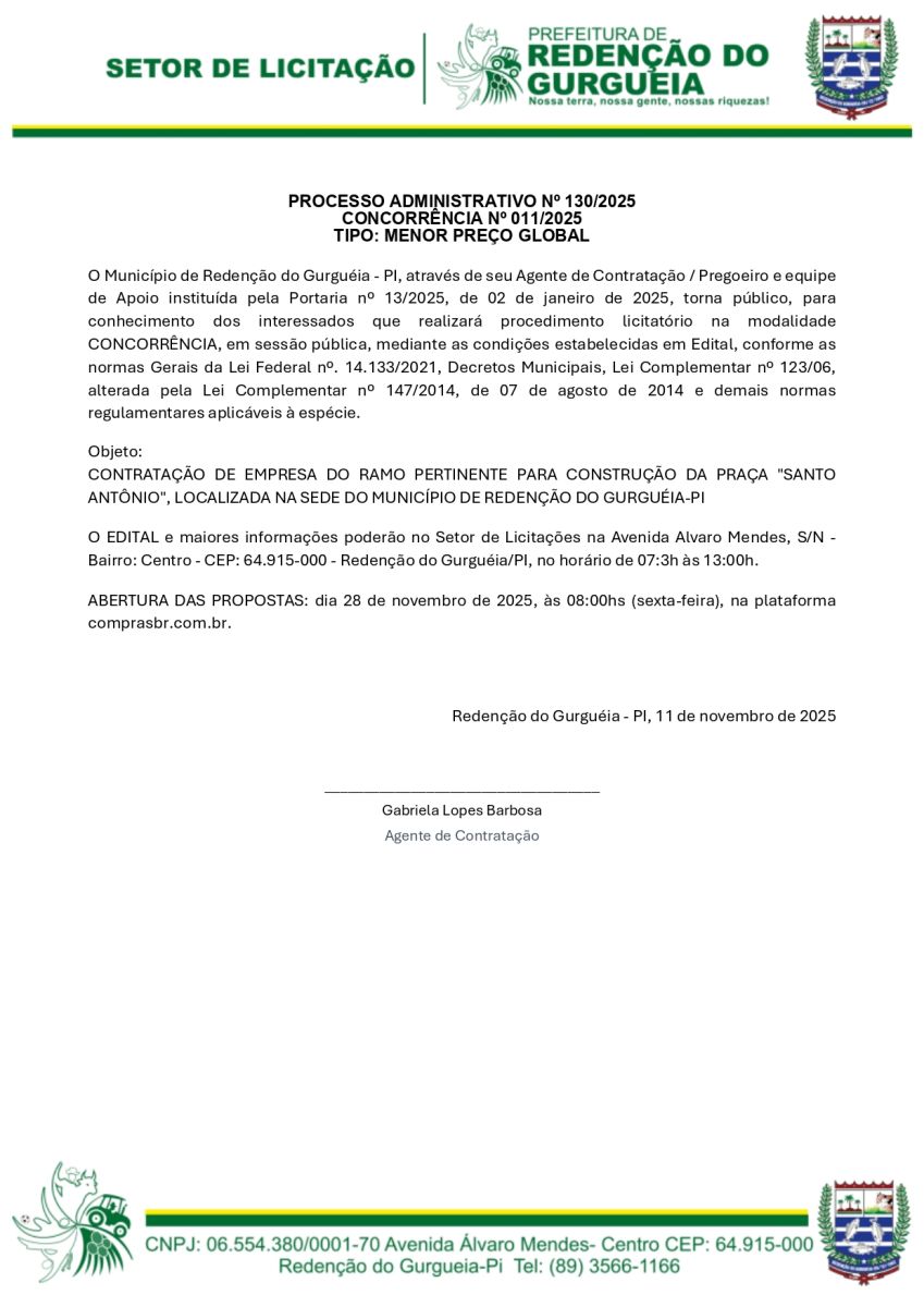 AVISO DE CONCORRÊNCIA Nº 011/2025