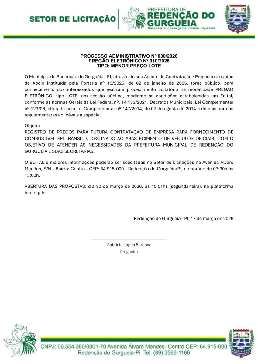 AVISO DE PREGÃO ELETRÔNICO N° 010/2026