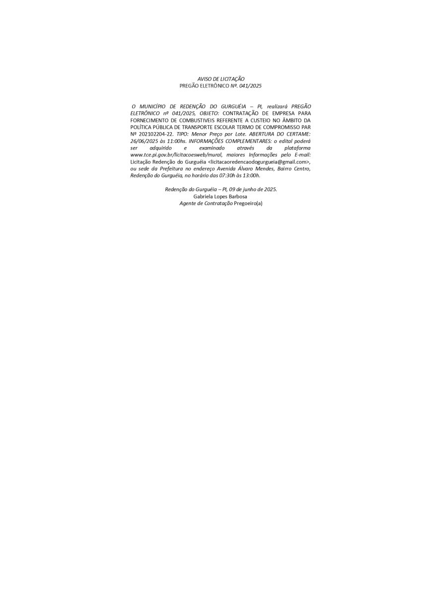 AVISO DE PREGÃO ELETRÔNICO N° 041/2025