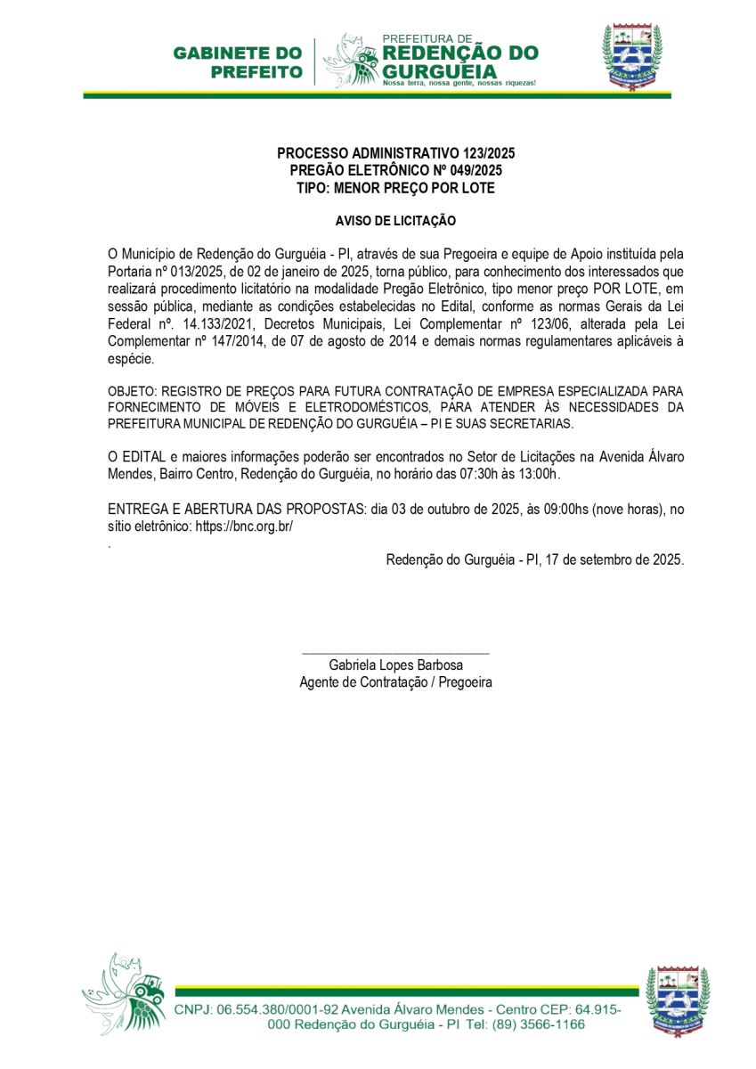 PREFEITURA MUNICIPAL DE REDENÇÃO DO GURGUEIA