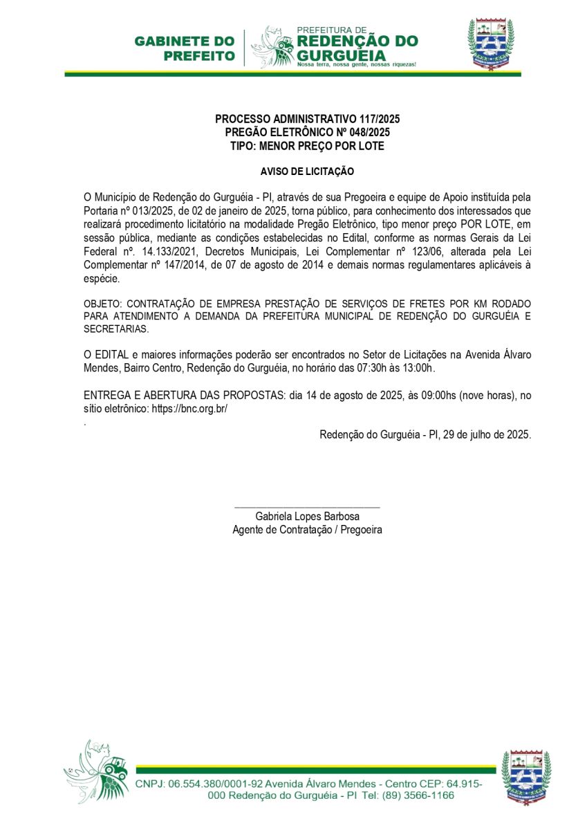 AVISO DE PREGÃO ELETRÔNICO Nº 048/2025