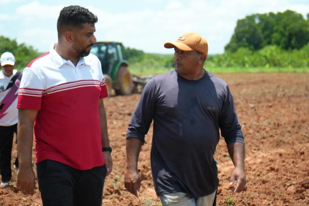 Prefeito Arlei acompanha serviços de gradagem de terras na localidade Palestina dos Borges